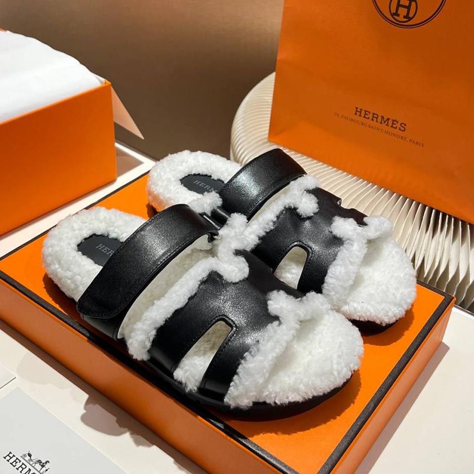 Женские брендовые Тапочки меховые HERMES Premium купить в интернет магазине