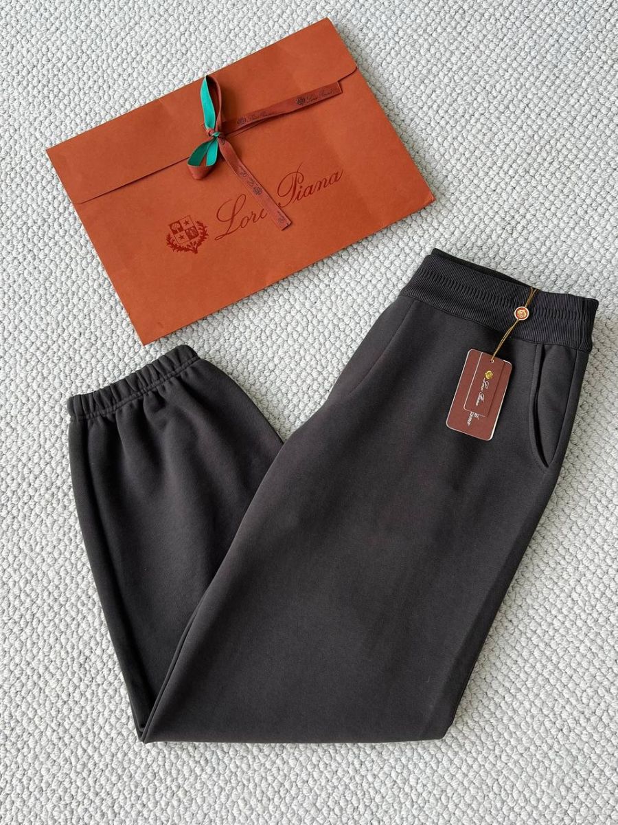 Мужской костюм от Loro Piana состоит из толстовки с капюшоном и элегантных брюк, выполненных из мягкого и высококачественного материала. Этот комплект идеально сочетает в себе комфорт и стиль, подходящий для создания расслабленного, но элегантного образа.