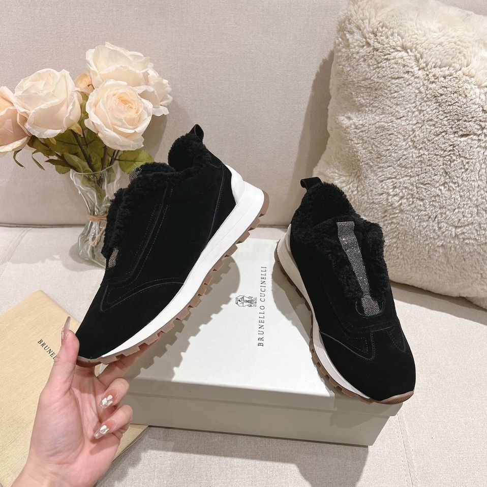 Кроссовки женские зимние Brunello Cucinelli PREMIUM из натуральной замши и меха со скидкой в Москве с доставкой по всей России