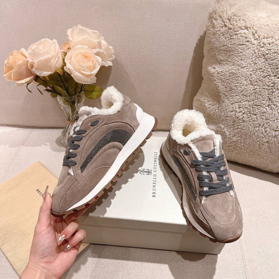 Кроссовки женские зимние Brunello Cucinelli PREMIUM из натуральной замши и меха со скидкой в Москве с доставкой по всей России