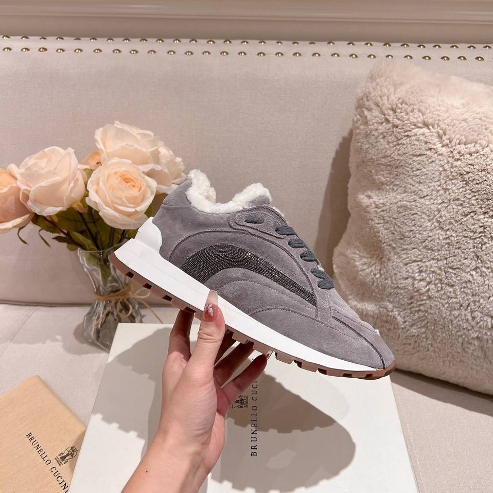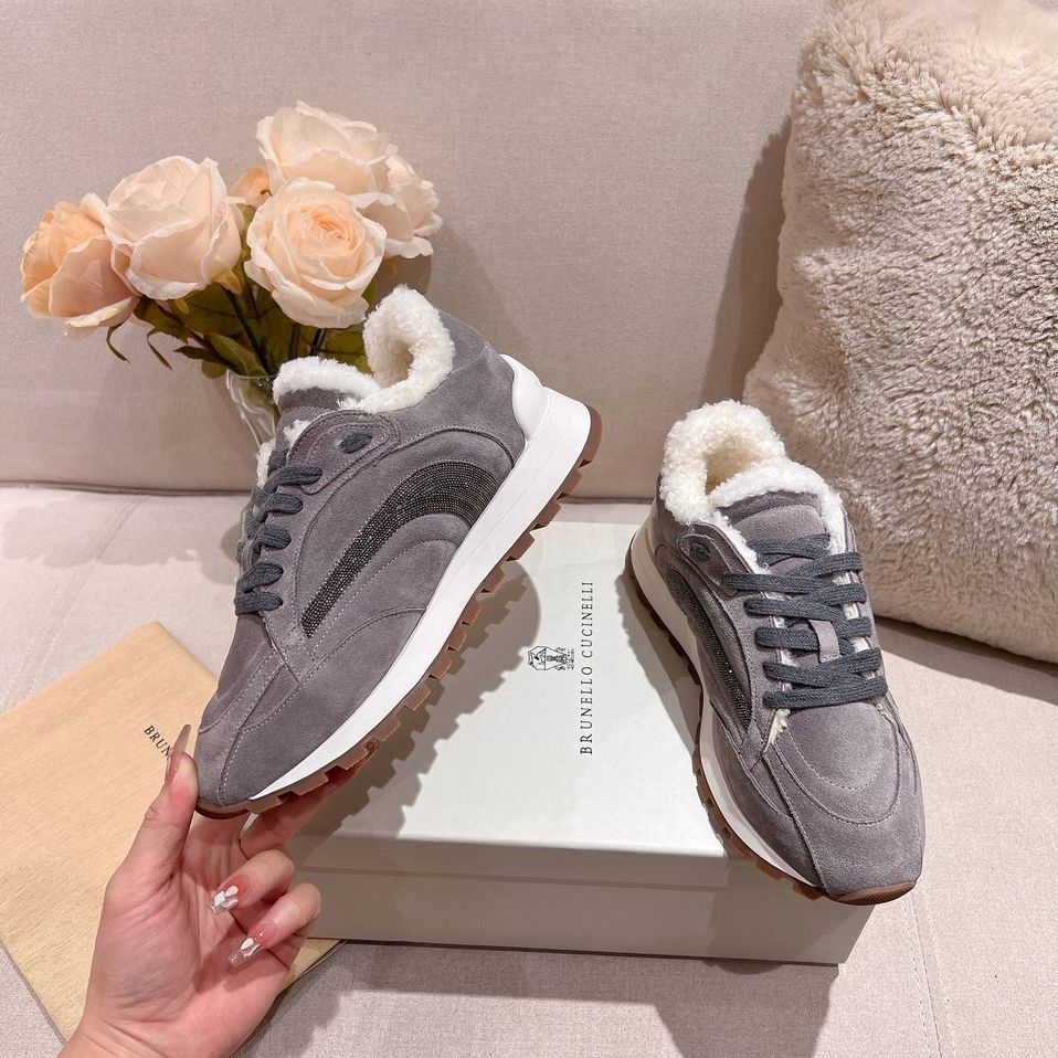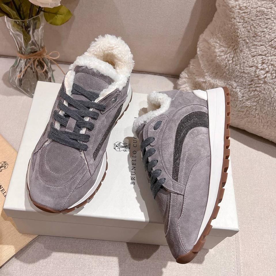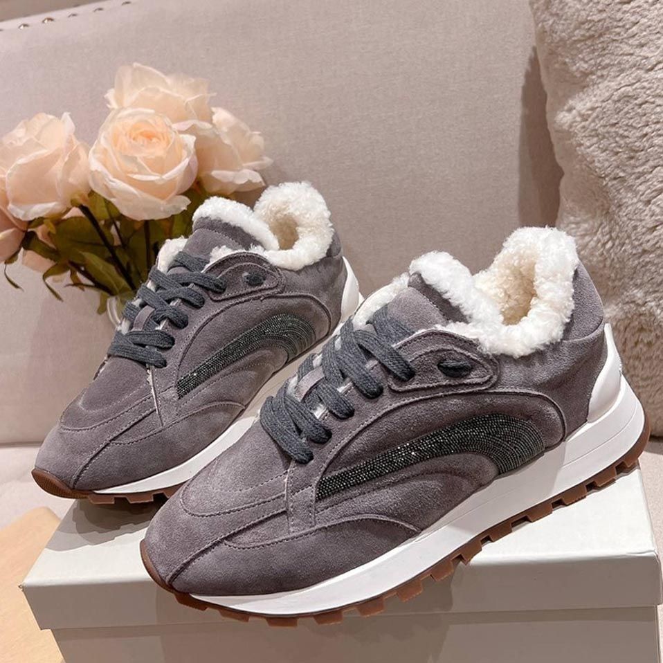Кроссовки женские зимние Brunello Cucinelli PREMIUM из натуральной замши и меха со скидкой в Москве с доставкой по всей России