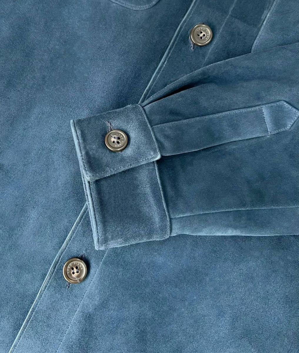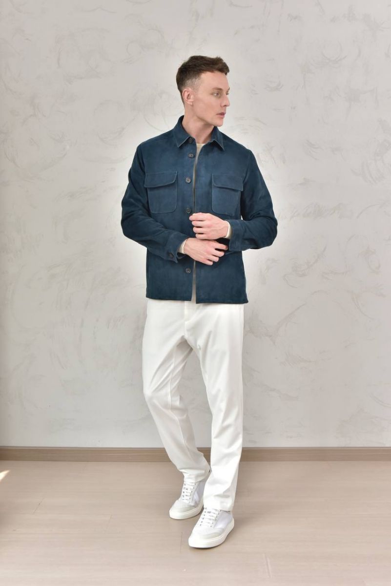 Мужская куртка LORO PIANA из мягкой замши. Легкая и несминаемая, она имеет свободный крой и карманы в боковых швах. Идеально подходит для путешествий и отдыха.