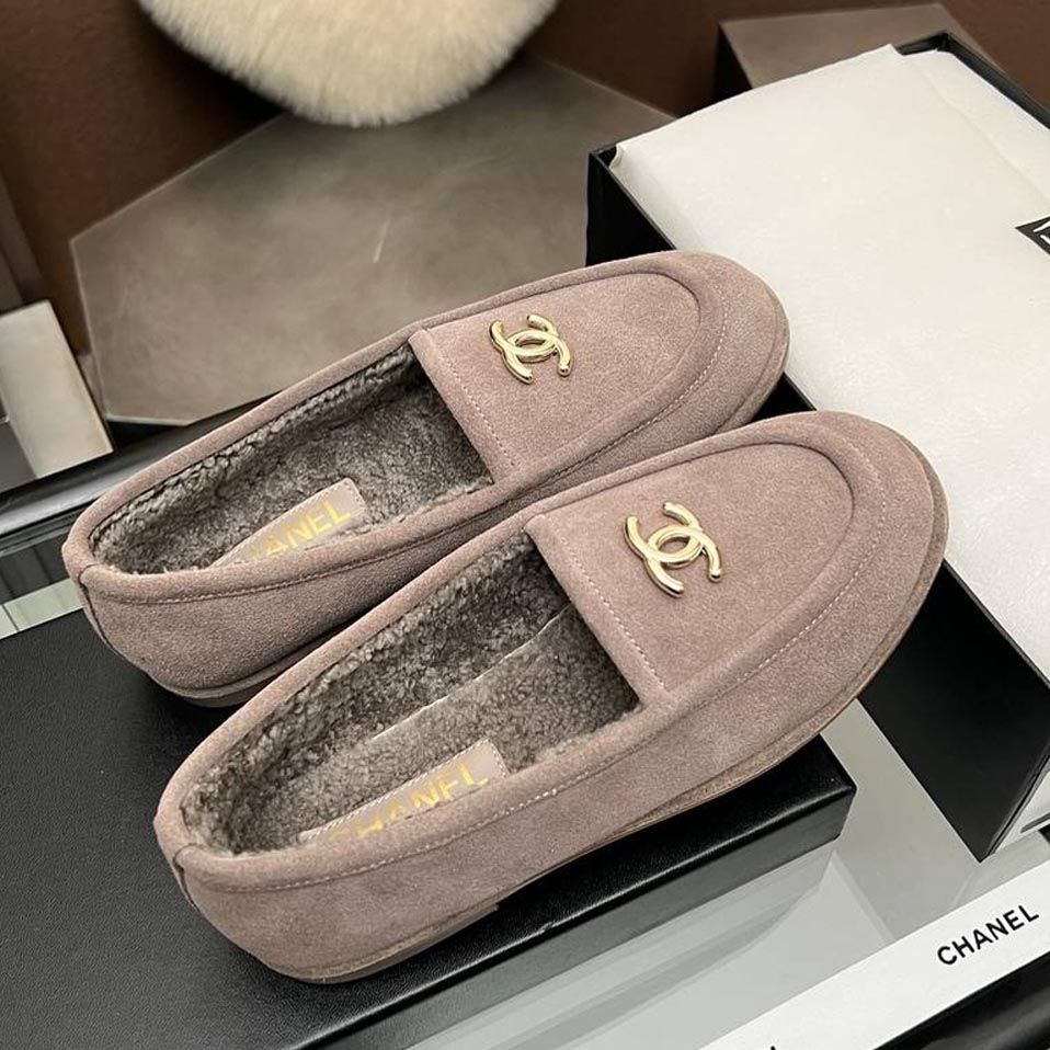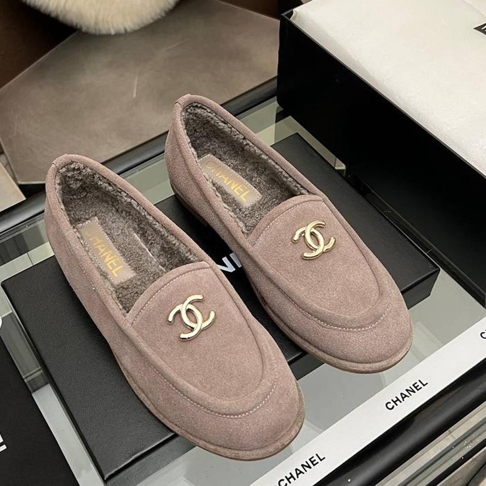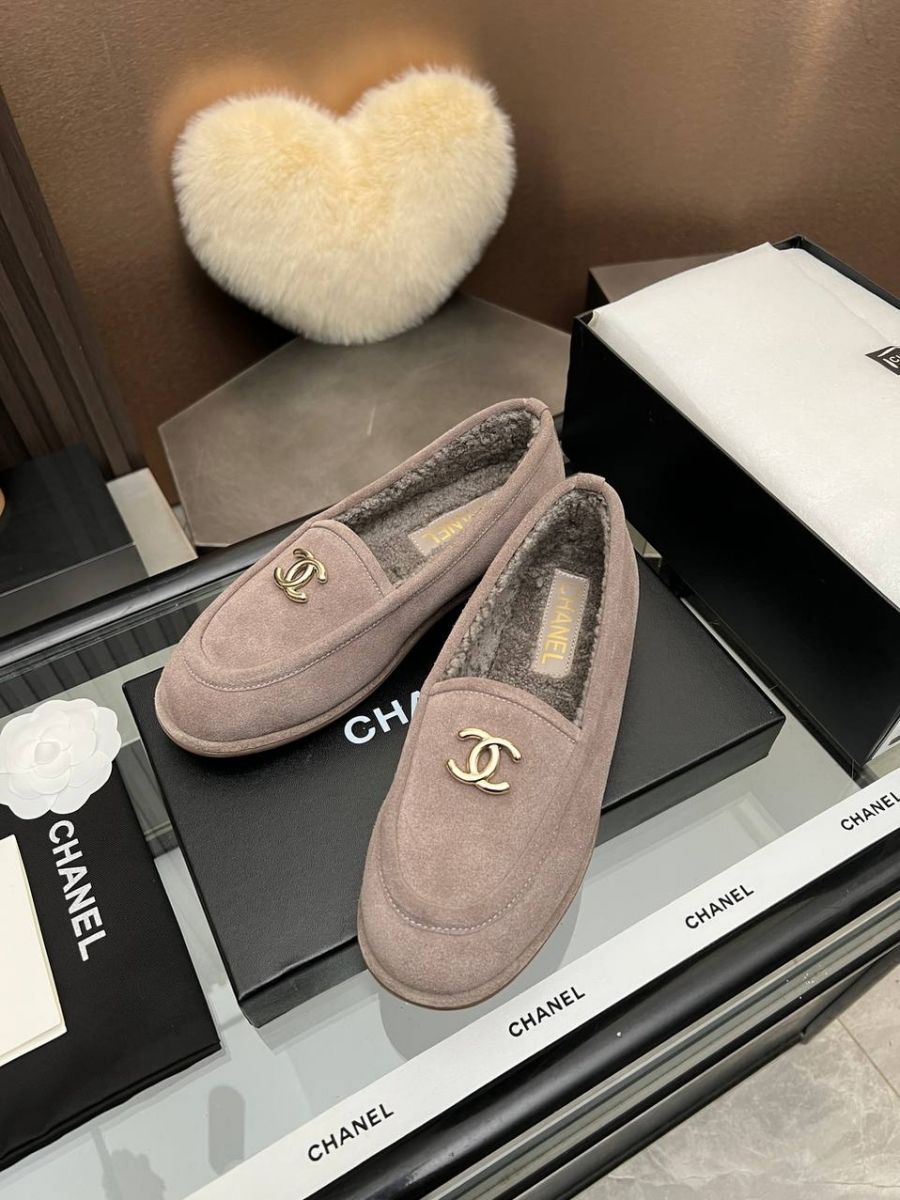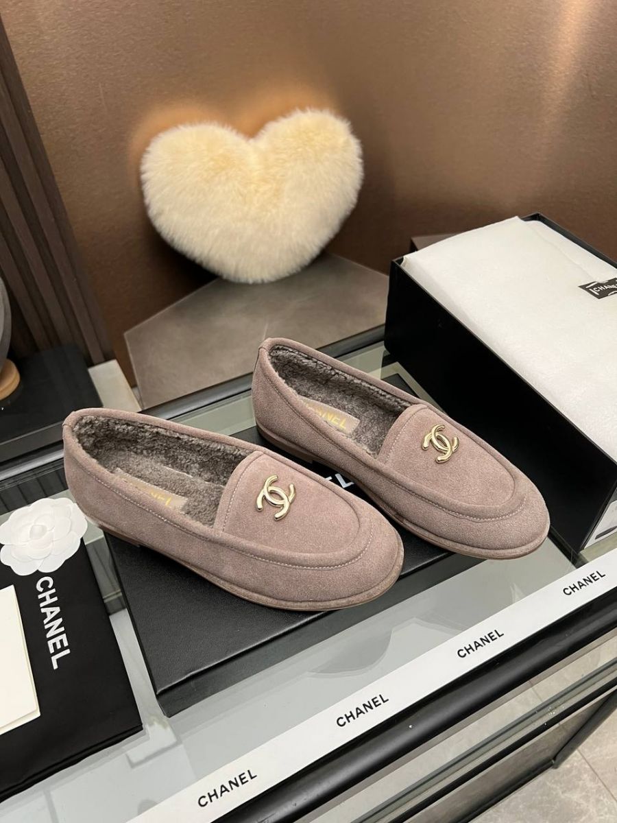 Лоферы женские зимние Chanel PREMIUM из натуральной замши и меха со скидкой в Москве с доставкой по всей России