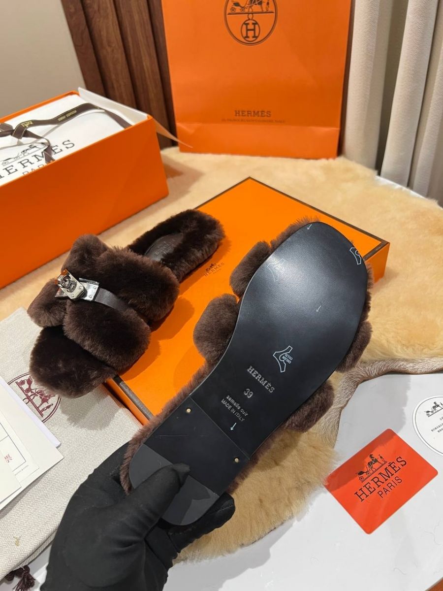 Мюли с мехом женские HERMES PREMIUM со скидкой в Москве с доставкой по всей России