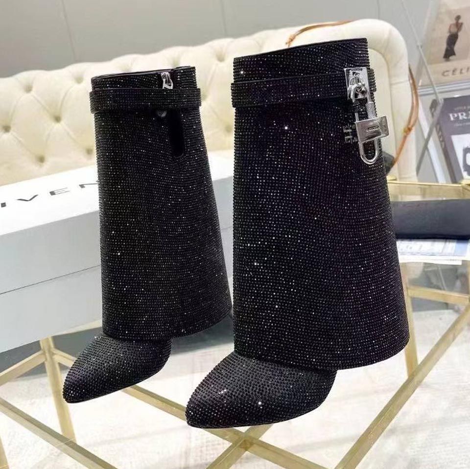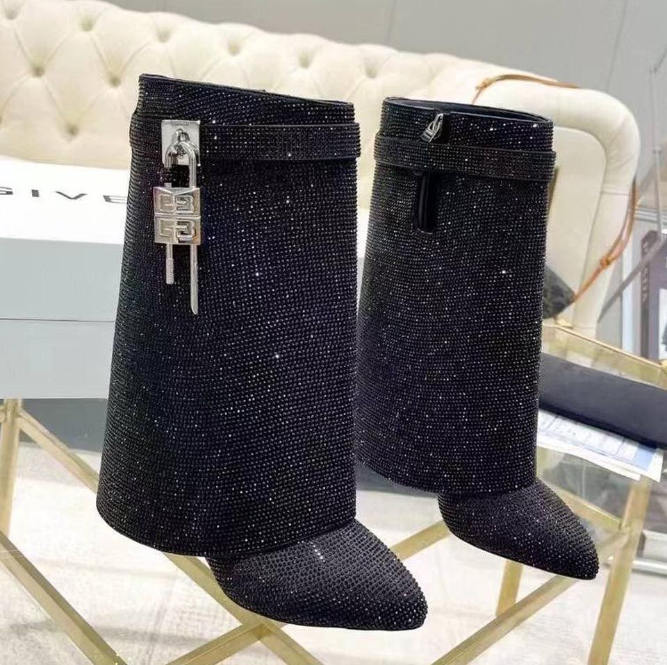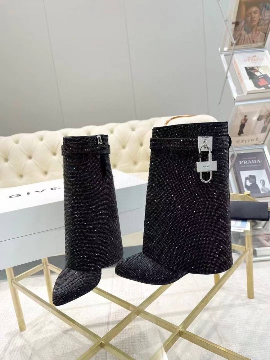Сапоги женские брендовые GIVENCHY PREMIUM в стразах из натуральной Кожи со скидкой в Москве с доставкой по всей России