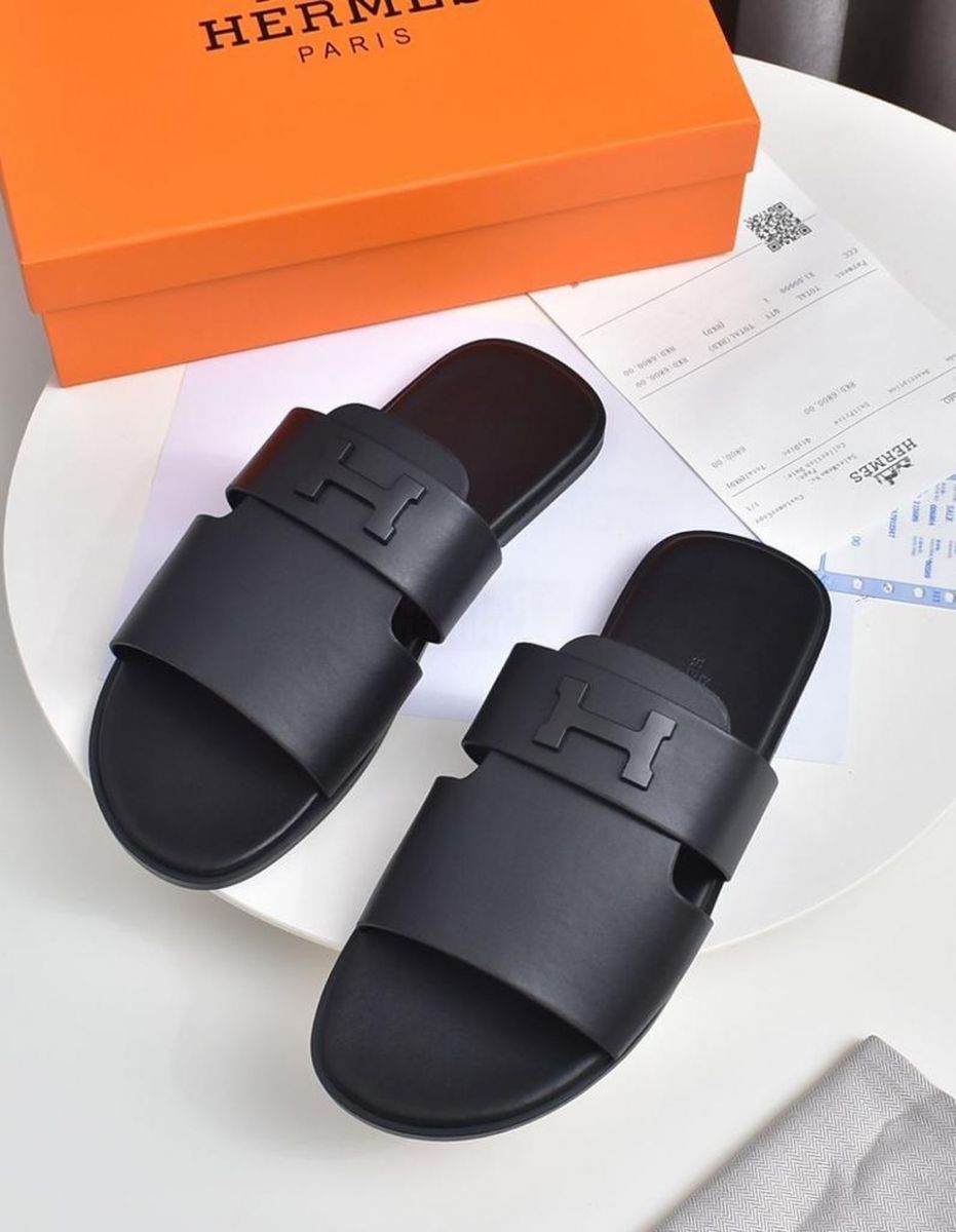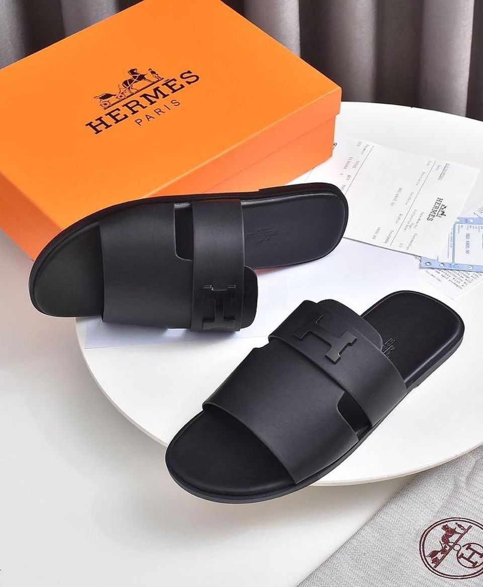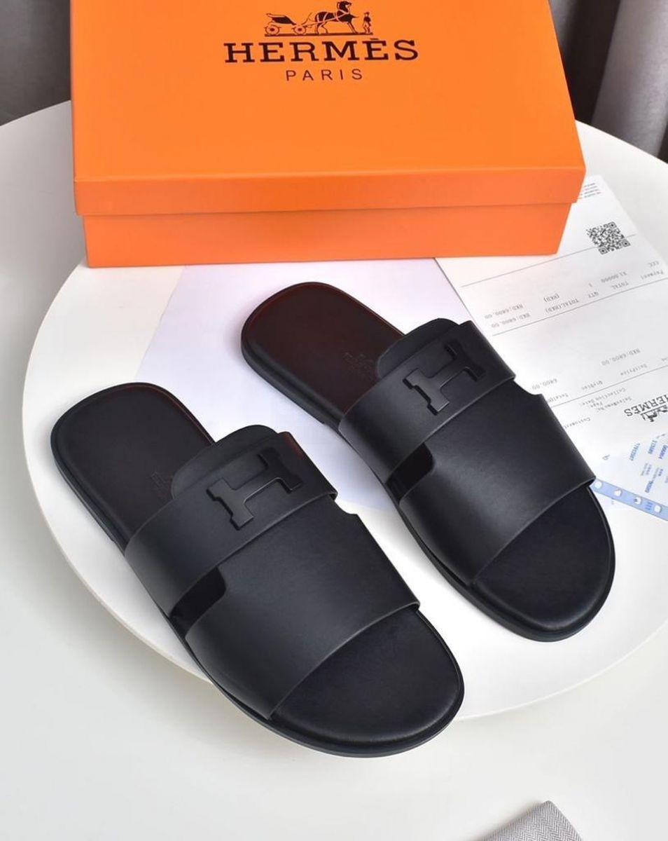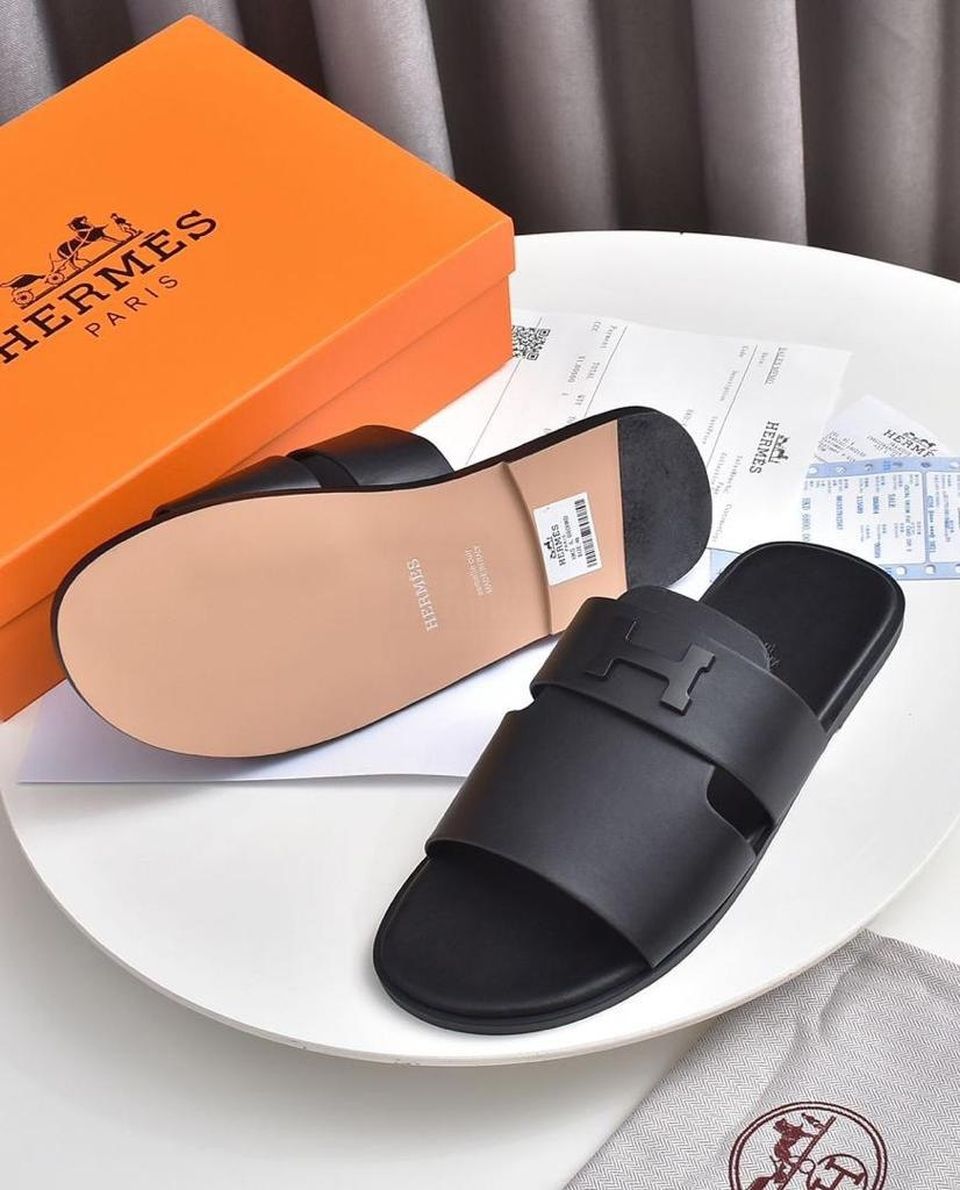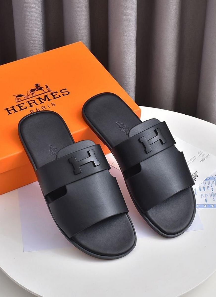 Мужские кожаные шлепанцы Hermes (Гермес) купить в интернет магазине в Москве со скидкой до 70%